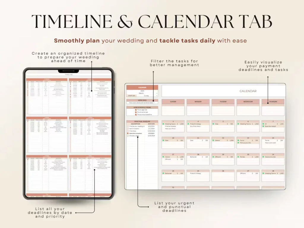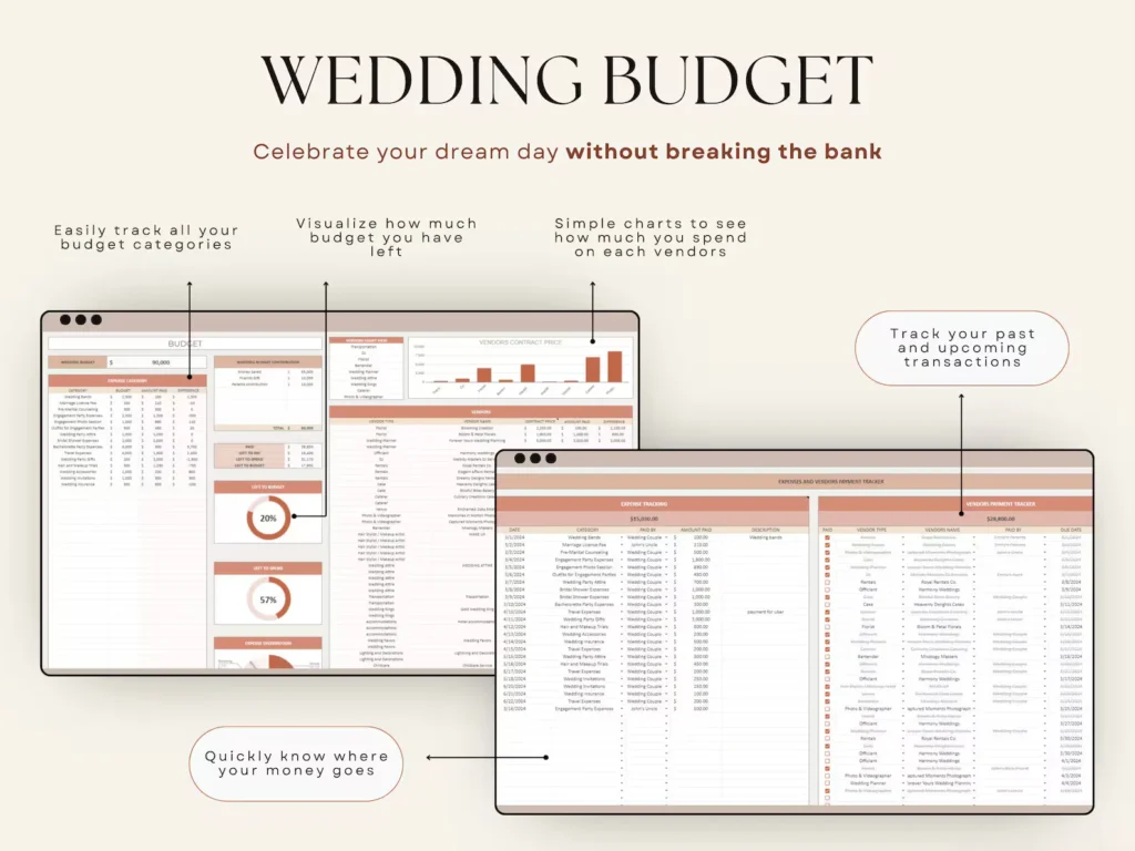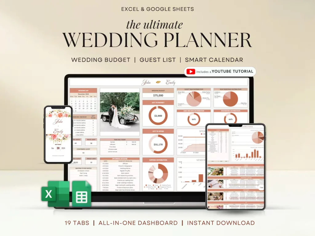 Yes! All budget calculations, vendor comparisons, and guest list tracking are fully automated with pre-built formulas and charts.